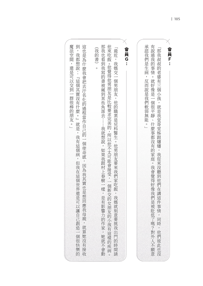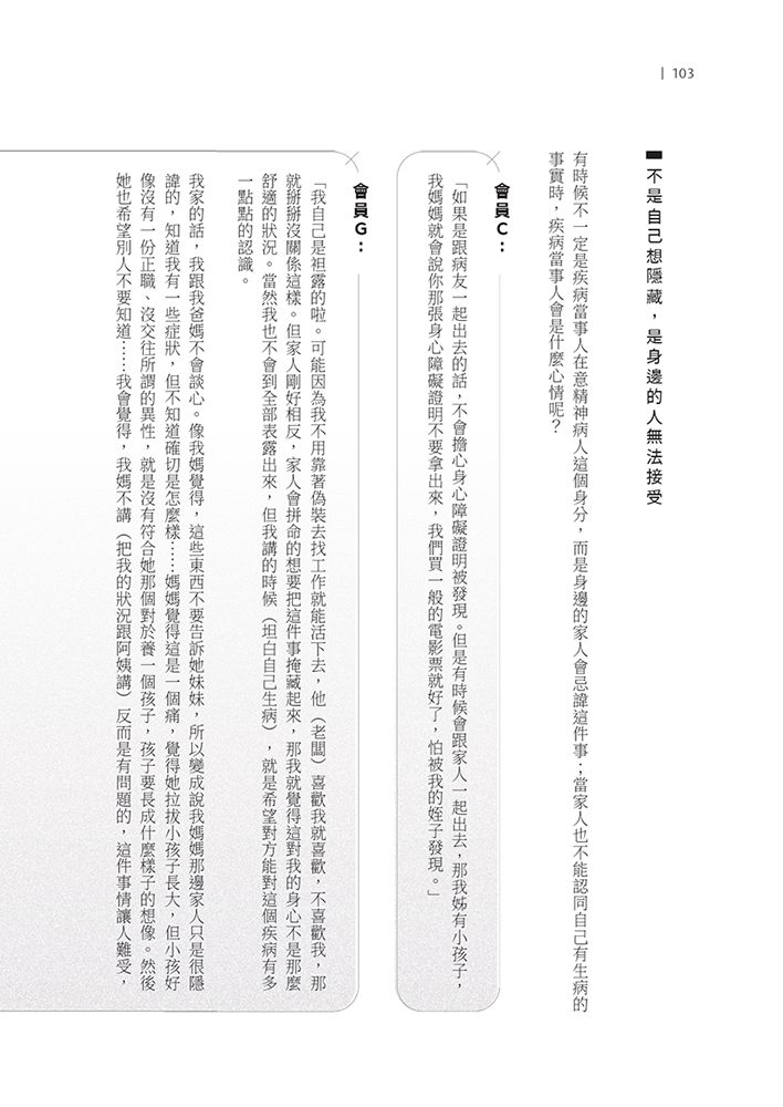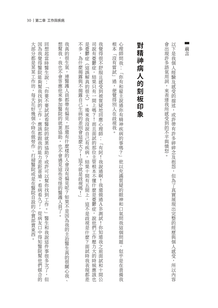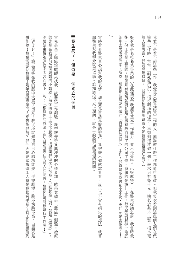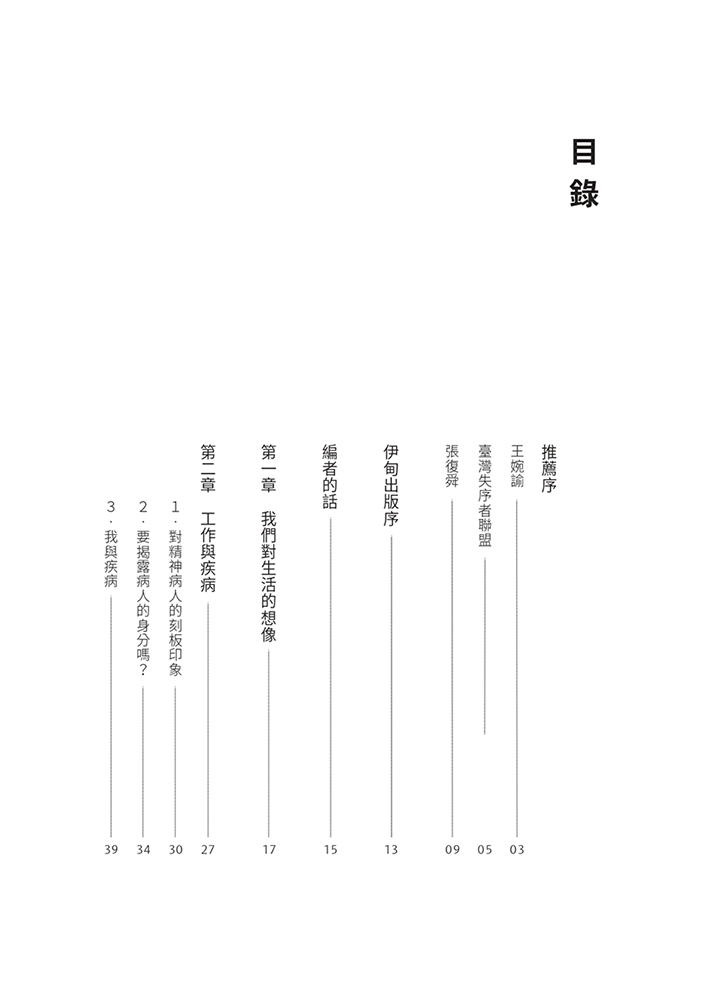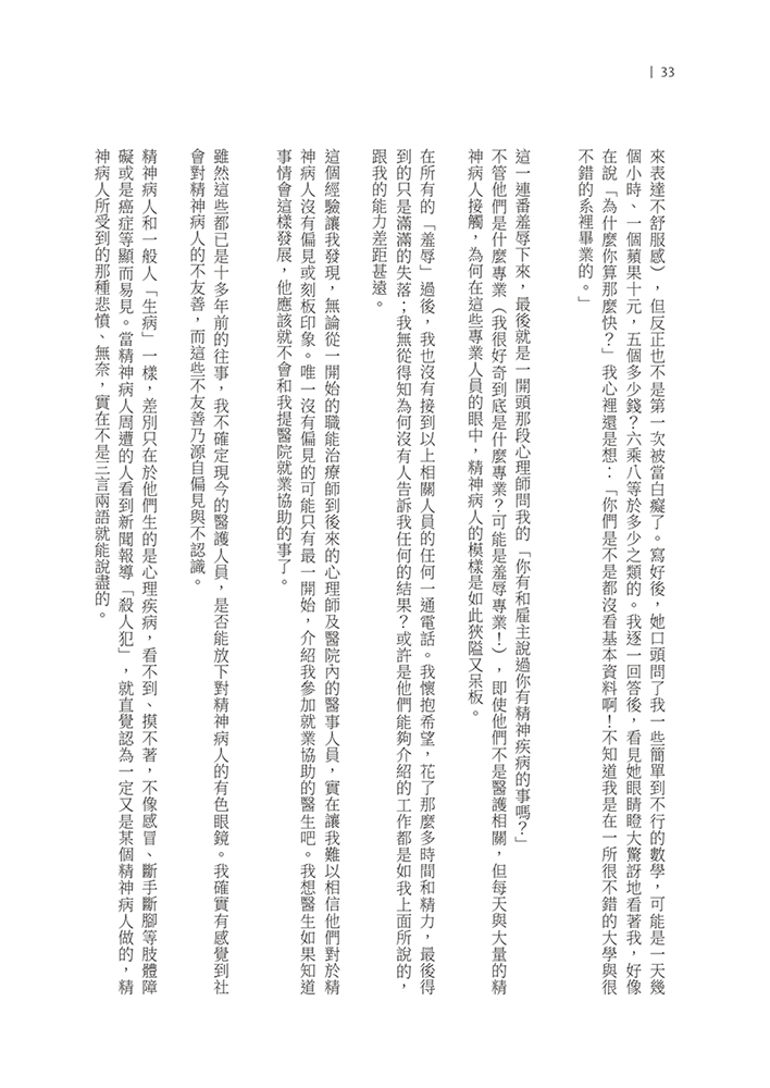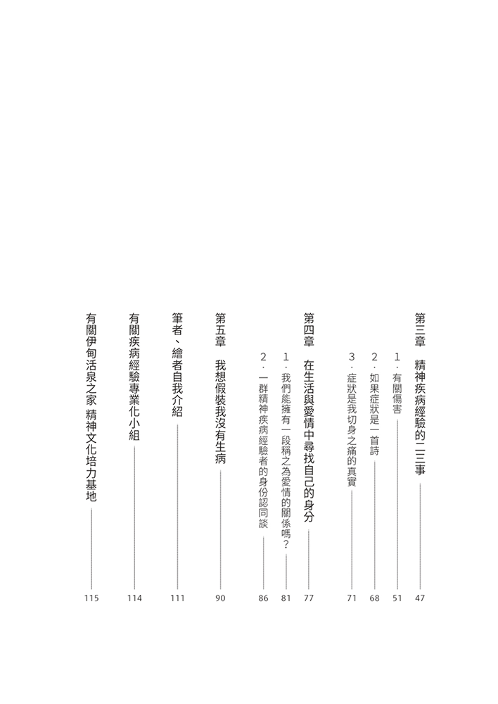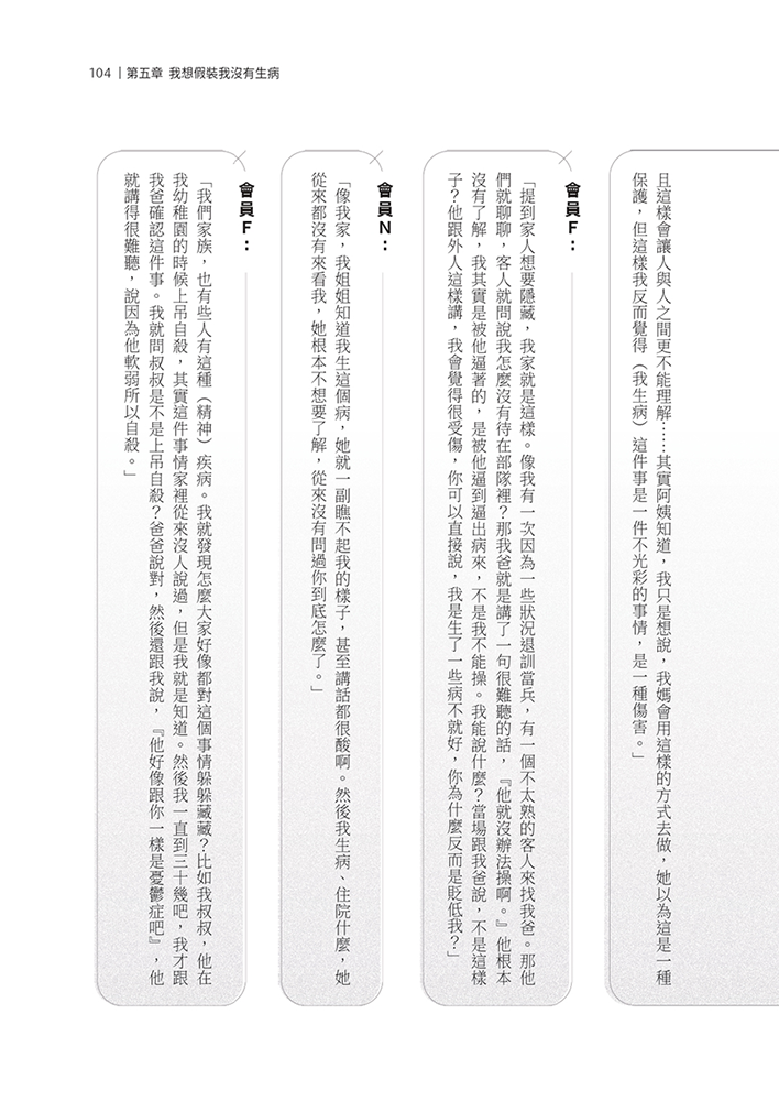 以上內容節錄自《我想假裝我沒有生病—精神疾病經驗者的自白》