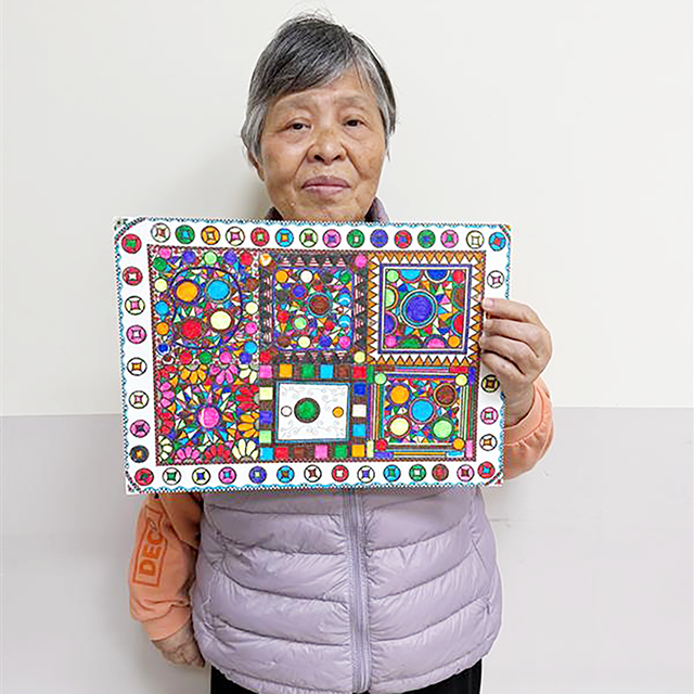 張瑞英(肢體障礙/中度),擅長水彩畫和油畫。靠著熱情與堅毅的意志突破身體重重障礙,完整構圖、描框及上色等精細動作,並巧妙地運用油、版畫技巧,讓作品充滿「瑞英式的風格」。