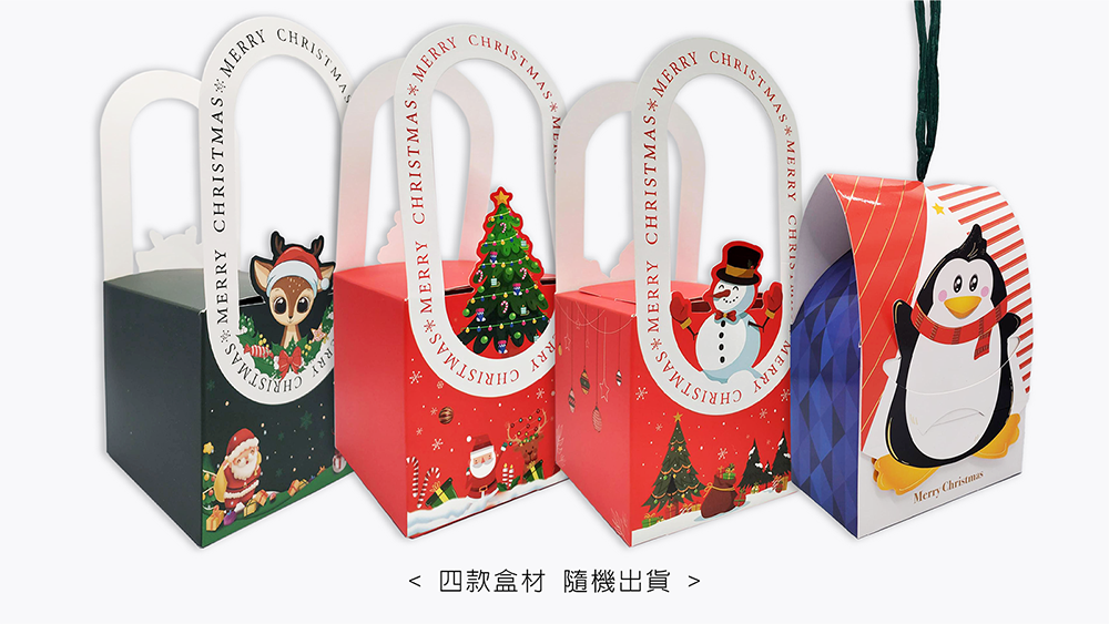 - 雪人(另一面是聖誕老人)、聖誕樹、麋鹿手提盒